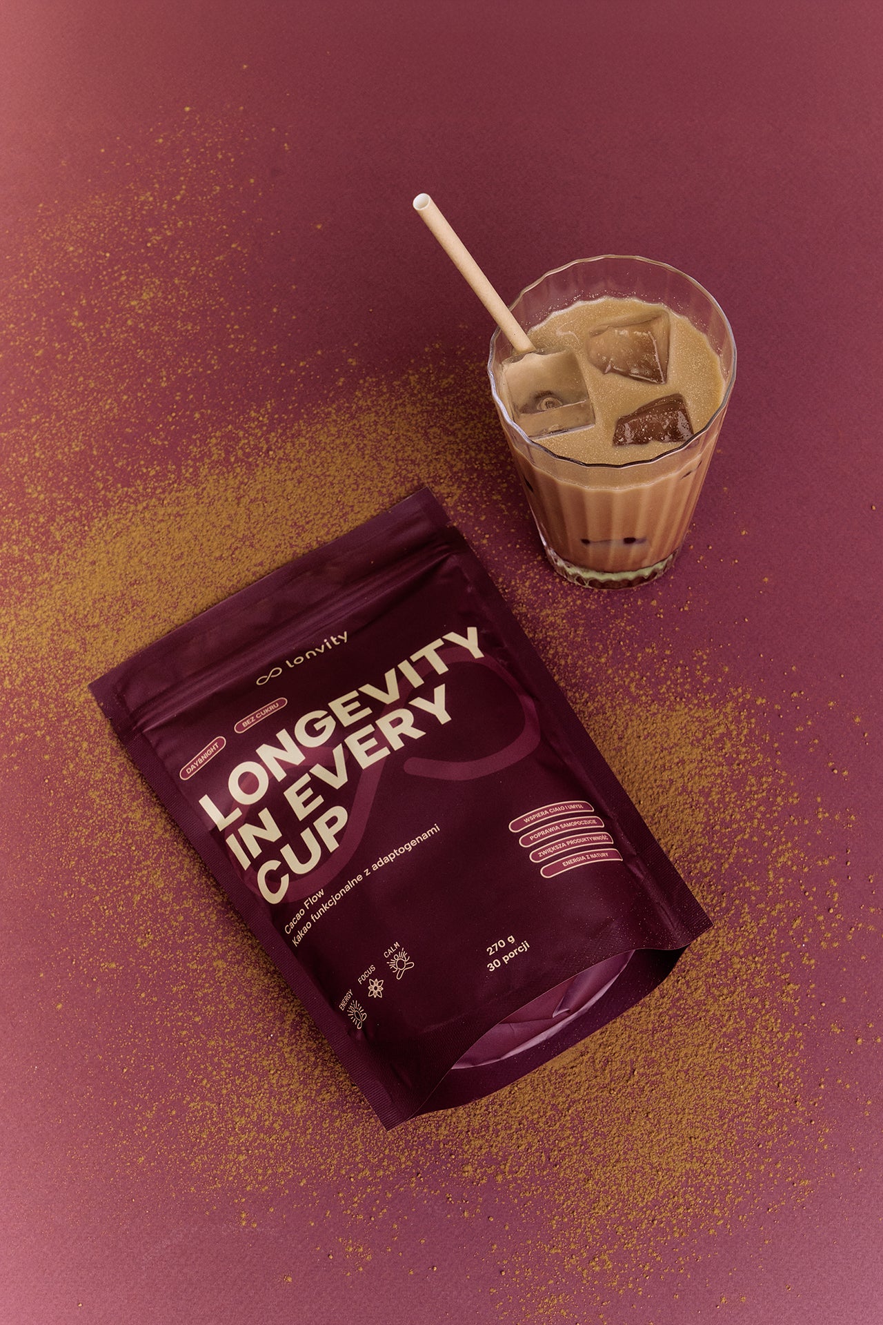 Lonvity to codzienny rytuał, który wspiera Cię, gdy działasz na pełnych obrotach. W jego składzie znajdziesz 9 naturalnych składników — w tym kakao ceremonialne Criollo, maca, olej MCT i grzyby funkcjonalne takie jak reishi, lion’s mane czy chaga — które wspierają koncentrację, odporność i dobre samopoczucie. Możesz pić je w najprostszej formie z wodą lub stworzyć własny napój: adaptogenną latte, kakao-tonic czy rozgrzewającą wersję z przyprawami. Bez nadmiernego pobudzenia, bez efektu „crashu”. Po prostu – długowieczność w każdej filiżance.