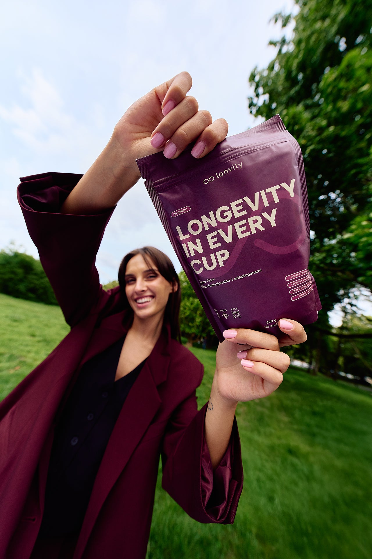 Kawa działa tylko na jeden wymiar – chwilowy zastrzyk energii. Lonvity działa na wielu poziomach: wspiera ciało, umysł i emocje. Zamiast wzlotów i spadków, dostajesz spokój, skupienie i jasność, które zostają z Tobą na długo. Bo długowieczność to nie sprint – to mądre tempo każdego dnia.